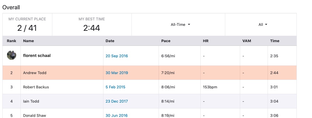 The weather was poor. The wind was in the wrong direction. I didn’t even think I was running hard enough to make an attempt on the record when, I got home, checked Strava, and, blimey, I was the second fastest in the world.