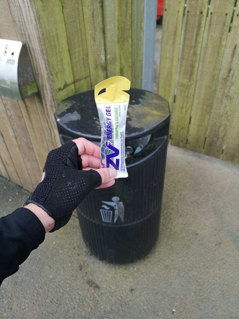 That’s why I have a bin stop. Somewhere I can stop and have a gel and immediately throw it into a bin. My soggy pocket problems is solved!