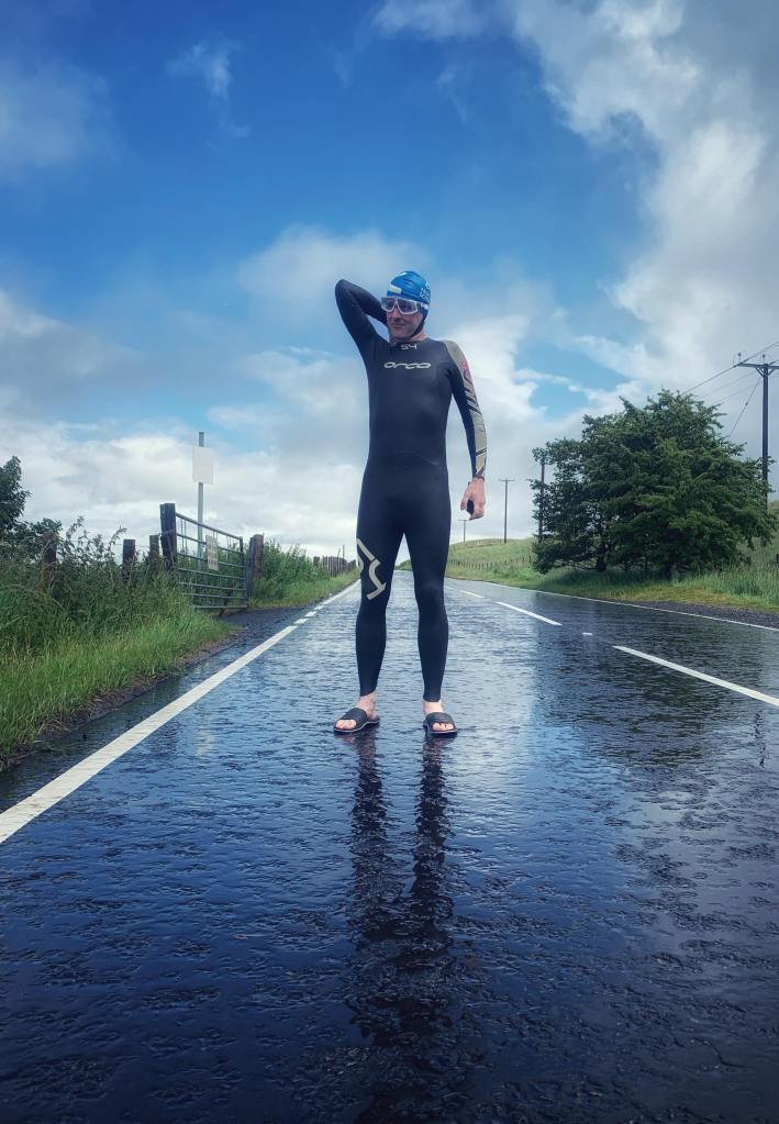 So, while the top photo may show sunshine like an Egyptian desert, the reality was that this swim was a bust and more time was spent struggling at the side of the road to get changed into and then out of a wet suit then actually swimming in the loch.