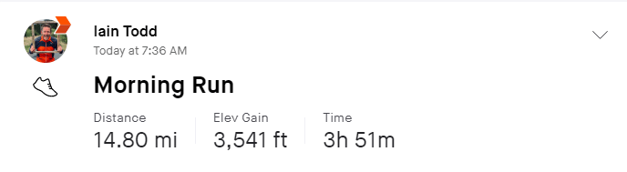 Run 3 complete – 14.8 miles. Only 51.2 miles to go!