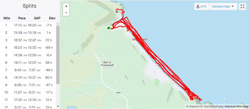 So, for this run, I varied the surface by running on a beach. The downside to this plan is time. I would cover more miles in less time on concrete than on a beach but I wouldn’t enjoy it as much. It is a balance of fun versus miles.
