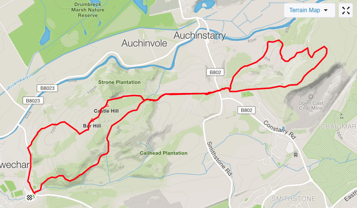 The route for the race starts in Croy but I live near Twechar so I normally do it from there instead. I will describe it as if its the race route.