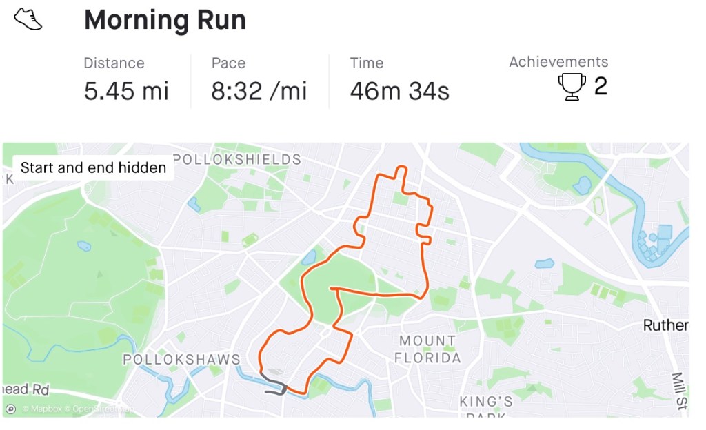 After yesterday’s slump, today felt much better and was only spoiled by a common problem of running in Glasgow in January: ninja showers. It doesn’t matter if the sky is blue and the forecast is for a draught, in Glasgow, in January a shower can appear out of nowhere. Today was damp so a shower was not completely unexpected, I thought I had timed my run to miss it. However, if dodging showers was a game of Russian roulette then you have to always assume that there are five bullets in the gun instead of one and that chances are you are going to get wet. Why did I not attempt the challenge in June?!? I got soaked.