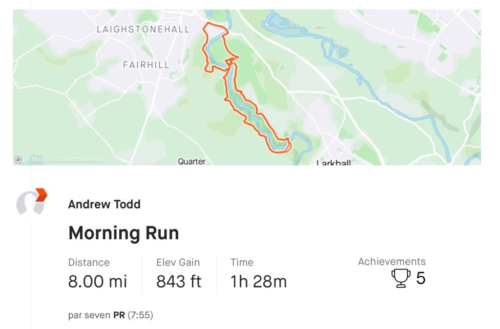 I had no plan going into this other than I would run, bike or swim every day. I didn’t plan how I would chose what to do, or a routine I would follow. Instead, I would decide day by day what I was doing depending on time, weather and location (work or home). Except that is for today as I’d already booked a place on the Glasgow Triathlon Club’s ‘Rugged Run’ around Chatelherault in Hamilton. That meant today I didn’t have to think about anything. I just went to the run as booked, did it and came home. It required no thinking, not that there’s much thinking in a challenge like this but anything that cuts down the amount of time required is a good thing – like former US President Barack Obama only having two colours of suit and two colours of shirt, so that he didn’t have to think about what he was going to wear. He just picked a suit and a shirt and got on with the important job of deciding whether he was going to run, bike or swim that day (or whatever other much more important things he was doing).