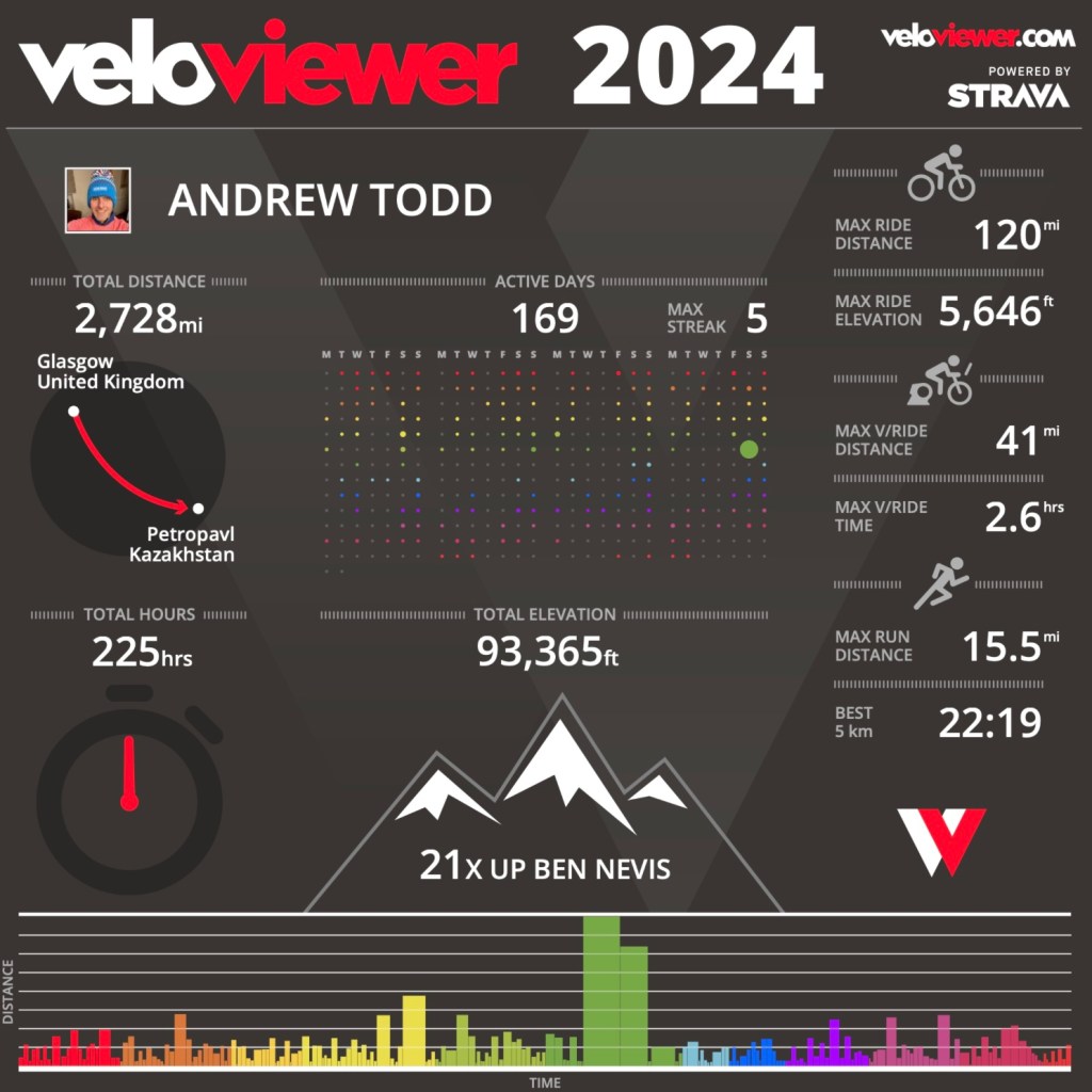 This year it appears that Veloviewer has not only started charging £10 to view your infographic it has also dropped swimming so that it only shows running and cycling. Maybe next year they’ll charge a £20 option to get all your data?