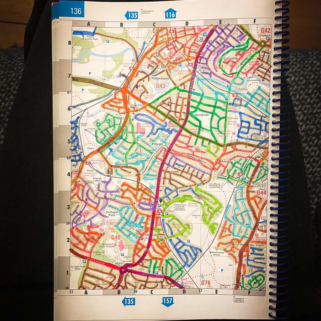 Tip Three: After running all of these streets I have found a new love of the area I live – because these are no longer Glasgow’s streets, these are my streets. I am the Snake from the old Nokia mobile game. I have conquered these streets and turned them red, blue, green, brown, orange, yellow, blue and purple in my name. Now, to add the other 199 pages to complete my atlas.