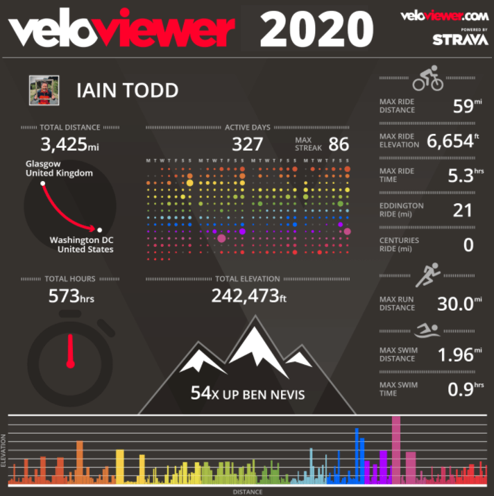 I did over 3,400 miles of swimming, biking and running. Which was enough distance to take me to Washington DC. Which makes me the second Lewis boy to get there. Donald Trump beat me to it. His mum is from the Isle Of Lewis just like my mum.